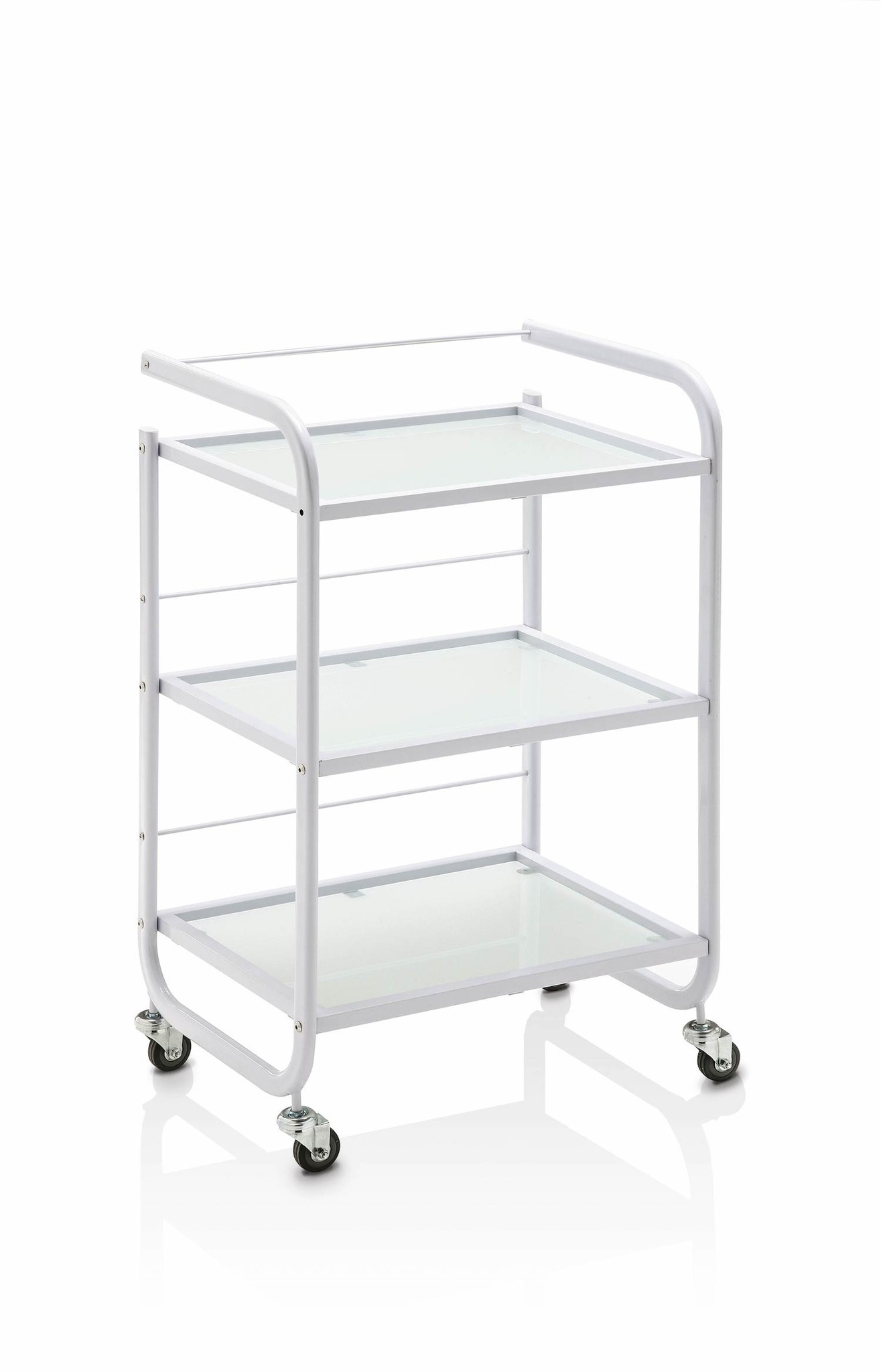 Aan het werk en uw spullen dicht bij de hand nodig? Daar komt deze witte Premium trolley om de hoek kijken. Eenvoudig, maar stabiel en doet wat het doen moet. Er is genoeg ruimte voor uw spullen op de drie glasplaten. En de bovenste glasplaat is omgeven door een houder zodat de spullen er niet af kunnen vallen. Deze handige gereedschapswagen is ideaal om langs de kant te plaatsen om uw items te stallen, maar ook om er even bij te pakken want trolley Premium is makkelijk verrijdbaar.